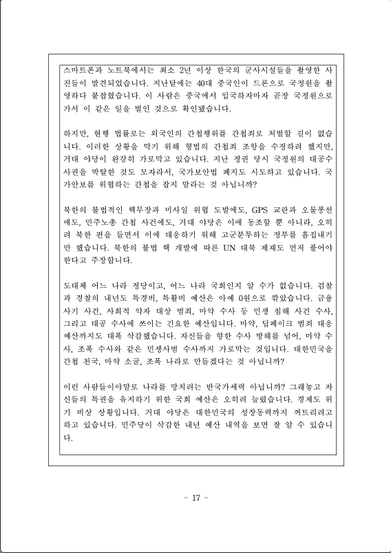 이것뿐만이 아닙니다. 지금 거대 야당은 국가안보와 사회 안전까지 위협하고 있습니다.