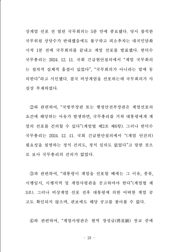 59. 한국일보, 2024. 12. 11. 자 <계엄 국무회의 '위법' 인정한 한덕수 "실체적·절차적 하자 있었다">