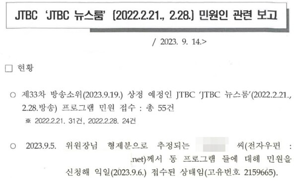 하지만 류희림 위원장은 관련 민원을 직접 처리를 했죠.. 이게 논란이 되는 이유일 겁니다. 알고도 회피하지 않고 적극 처리했다...