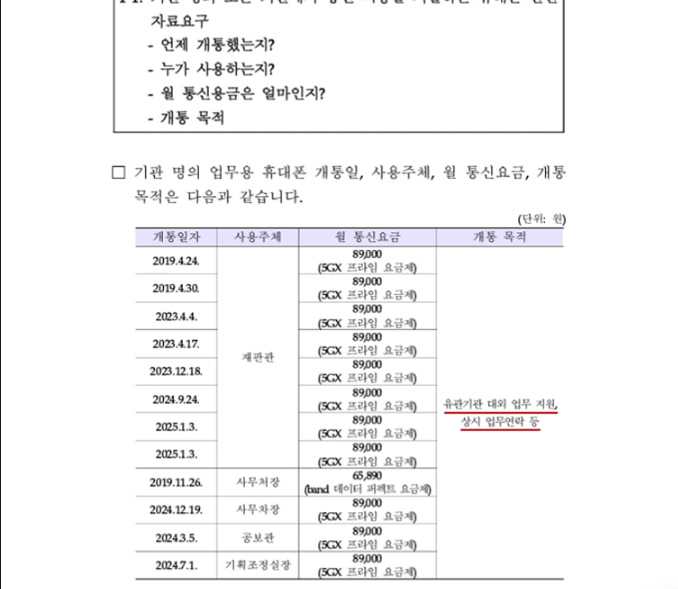 중요한 알맹이... 그 업무폰으로 누구와 주고받았는지에 대한 내용입니다. 위의 내용은 정작 그 중요한 내용은 없고 그저 밝혀야 한다... 이게 전부입니다.