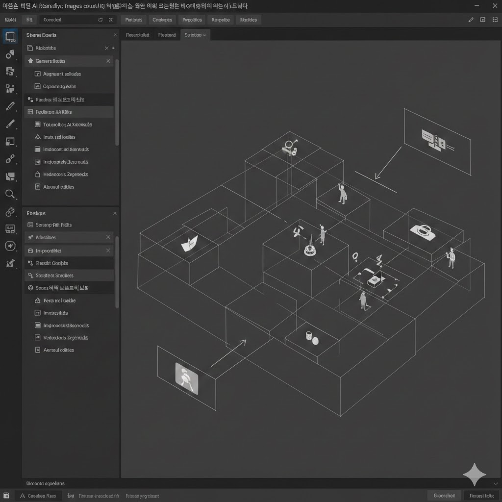 - 공간 인지의 결여: AI에게 언어는 그저 확률적인 텍스트 덩어리일 뿐, 그것이 캔버스 위의 특정 좌표나 부피를 가진 객체라는 개념이 없습니다. 이 언어적 데이터를 공간적 데이터로 '분리'하는 작업 자체가 현재 엔진 구조를 송두리째 바꿔야 하는 일입니다.