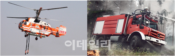 또한 독일회사에서 제작하는 산불전문 진화차는 대당 약 10억원으로, 3000ℓ의 물탱크를 갖추고 있고 산악지형에 대한 접근성을 높일 수 있는 장비로 평가된다.