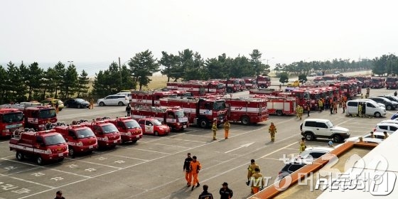지난 4일밤, 강원도 고성 ·속초 산불이 확대되자 전국의 소방차들이 화재현장으로 출동했다.