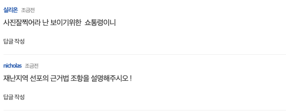 그리고 이번 특별재난지역 선포에 대해 대통령을 향해 쇼통한다.. 보여주기식 행정을 한다.. 등의 이상한 말을 하지 말길 바랍니다.