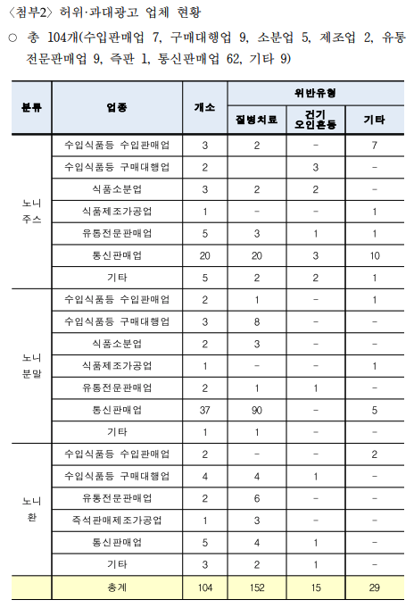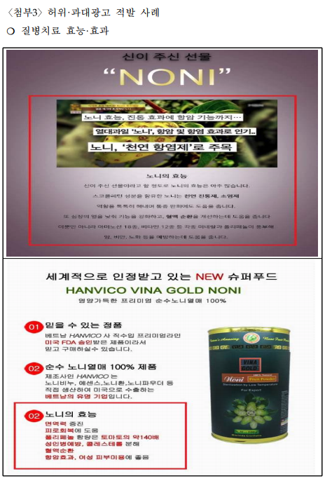 그리고 노니에 대해 허위광고와 과장광고를 한 제품 해당 사이트에 대해 차단조치를 하였다고 합니다.