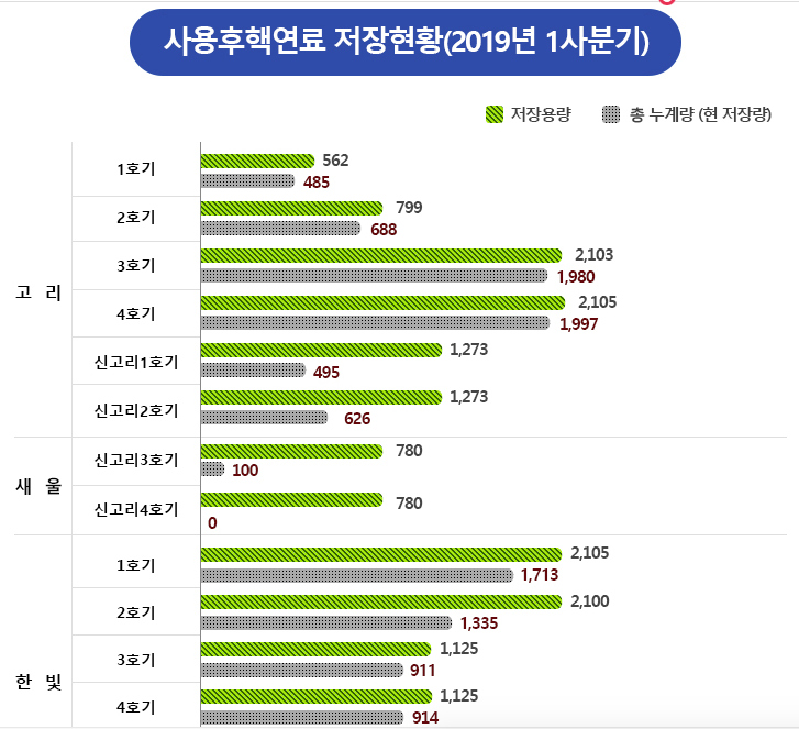 아직 전용, 즉 고준위 방폐장이 없어 전부 원전부지 안에 있는 임시 저장 시설에 보관중입니다.