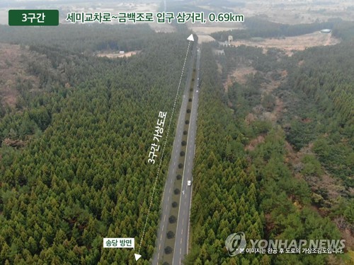 도는 도로확장을 위해 삼나무 900여그루를 벌채했으나 삼나무숲 훼손 논란이 일자 지난해 8월 공사를 중단했다가 삼나무숲 벌채 면적을 줄이는 등 대책을 마련해 7개월여 만인 올해 3월에 공사를 재개했다.
