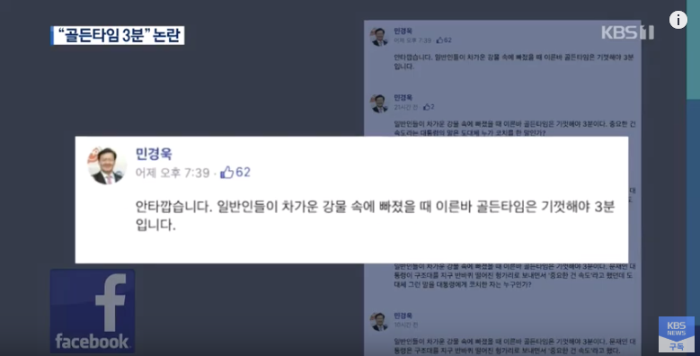 헝가리 유람선 사고 애도 분위기 속에 자유한국당 민경욱 대변인이 SNS에 "물에 빠졌을 때 골든타임은 기껏해야 3분이다"라는 글을 올려 논란이 일고 있습니다.