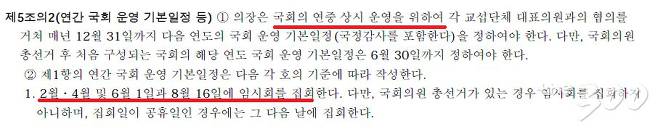 ◇국회법, 짝수달에는 임시회 여는 일정 운영