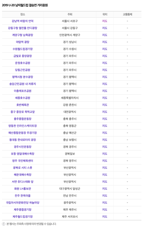 관련뉴스 : U-20 월드컵 응원전 상암경기장서 열린다