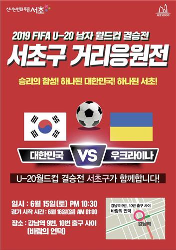 서초구는 15일 오후 10시부터 강남역 9·10번 출구 사이 '바람의언덕'에서 U-20 월드컵 거리 응원전을 개최한다.