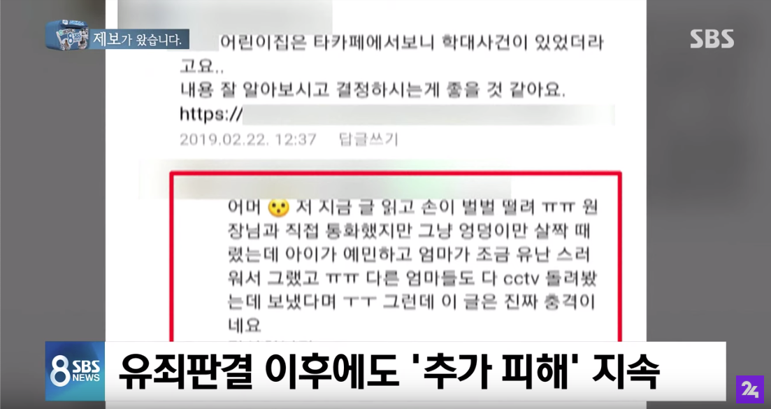 알고보니 아동학대를 벌인 원장이 다른 어린이집 원장에게 해당 피해자 아동의 부모에 대해 여러 않좋은 소문을 흘렸고 가해 교사는 문제없다는 탄원서를 종용했다고 합니다..