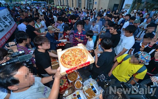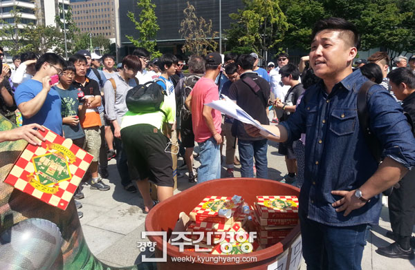 일베와 보수단체 ‘자유청년연합’ 회원 등 100여명은 지난 2014년 9월6일 세월호 유가족과 시민들의 단식농성장 앞에서 “광화문광장을 시민들에게 돌려달라”며 치킨과 피자 등을 주문해 먹었다. 이들은 당시 유가족들의 농성장 인근에 ‘일간베스트 회원님들 식사하는 곳’이라는 안내문이 붙은 대형 파라솔 등을 설치해 사회적 지탄을 받았다.