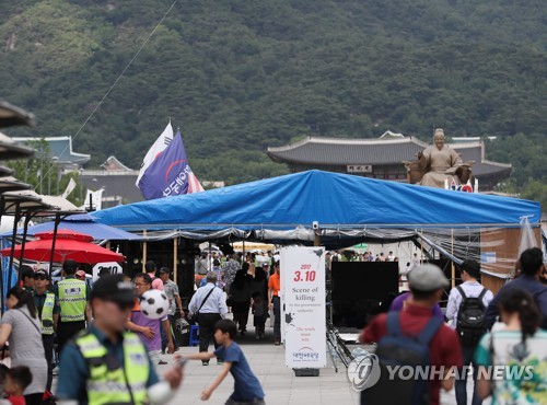 (서울=연합뉴스) 고현실 기자 = 대한애국당의 광화문광장 농성 천막으로 인한 민원이 200건을 넘은 것으로 파악됐다.