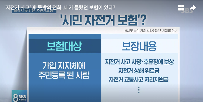 시민들이 자전거를 많이 이용하고 일부 지자체에선 따릉이 같은 자전거 대여서비스도 하는데 이런 보험이 있다면 다치더라도 부담이 덜 되겠죠..