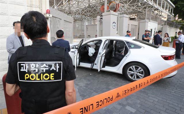 해당 차량은 대사관에 차량이 출입하는 철문에 손상을 주고 이후 견인차에 의해 견인되어 나갔습니다.