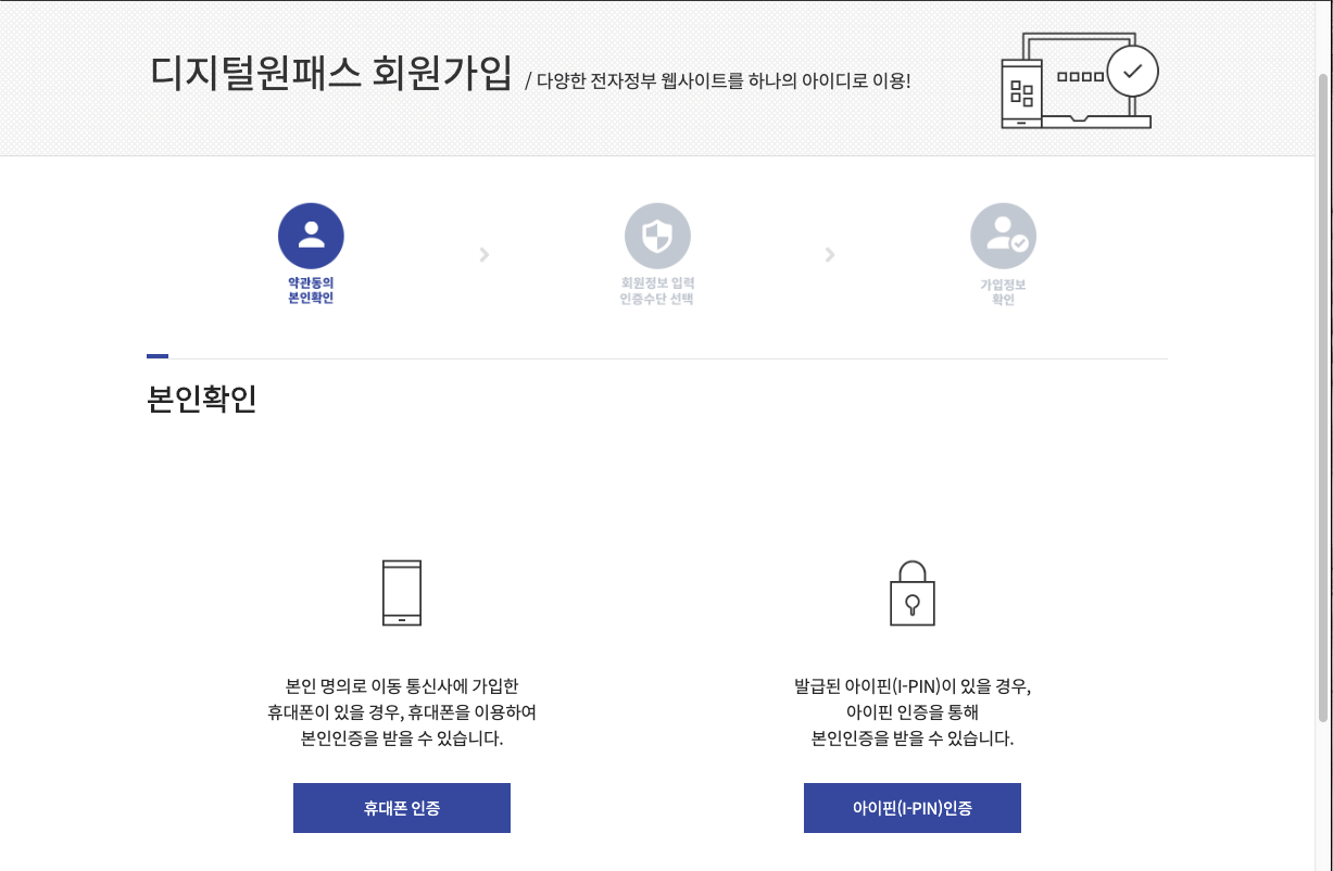 가입은 디지털원패스 통합인증포털에서 합니다.