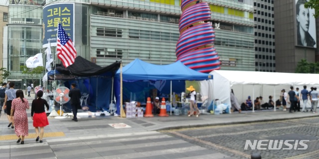 다만 우리공화당 측 천막의 경우 경찰의 시설물보호 대상인 '시설' 해당되지 않아 경찰 병력 배치 등의 조치가 이뤄질 가능성은 크지 않다.
