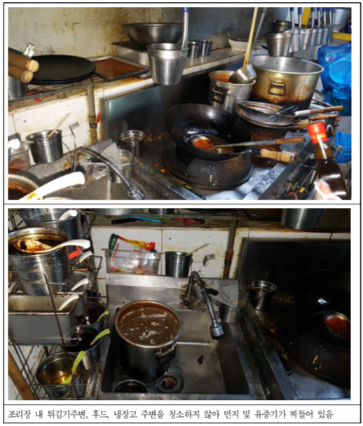 - 서울 서대문 소재 ○○업체(일반음식점)는 튀김기 등의 기계와 환풍기 등 조리장 시설 전반이 불결한 상태에서 음식을 조리하다 적발되었습니다.