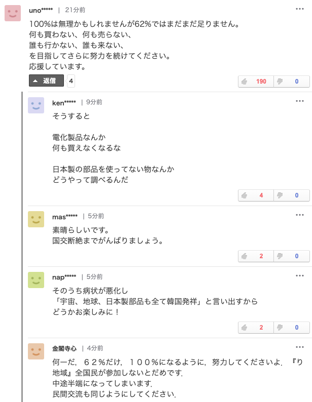 日本の輸出規制による日本製品不買運動に韓国国民の62.8%が参加中という調査結果 - Yahoo!ニュース(中央日報日本語版)