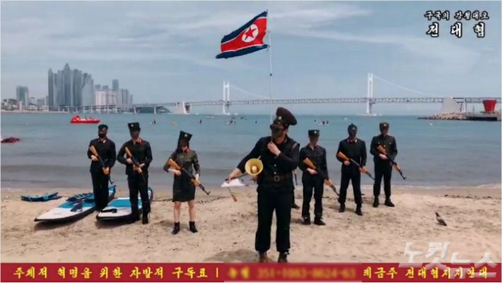 경찰에 따르면 24일 오후 2시2분쯤 유튜브 채널을 보고있던 시청자로부터 '광안리 해수욕장에서 다수인이 북한군인 복장으로 인공기를 들고 해변가를 걷고있다'는 내용의 112 신고가 들어왔다.