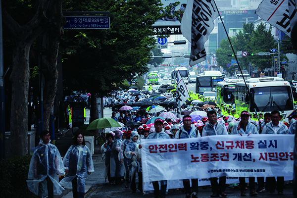 서울과 비교해 부산에선 야간근무와 근무시간이 길기에 사람이 채용된다면 그 근무시간을 줄일 수 있게 됩니다. 그리고 임금도 기존과 동결하고 수당으로 채운다고도 하니 노조입장에서도 그리 손해보는 건 없죠.. 그렇기에 합의가 된 것으로 보입니다.