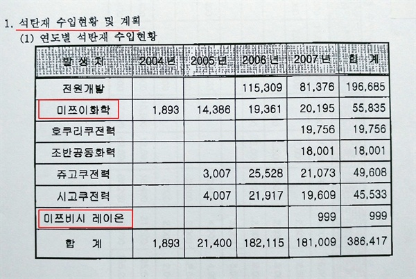 국내 시멘트사들은 2002년부터 일본 석탄재를 수입해왔다. 일본 석탄재 수입량을 확인하기 위해 2008년부터 2017년까지 지난 10년간 석탄재 수입현황을 환경부에 정보공개 청구했다.