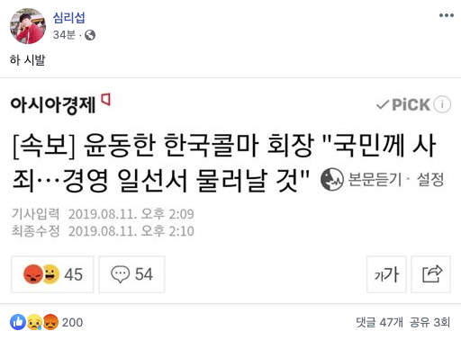 유튜버의 동영상때문에 한 회사의 회장이 일선에서 물러나게 되었습니다.. 유튜브가 무섭네요..