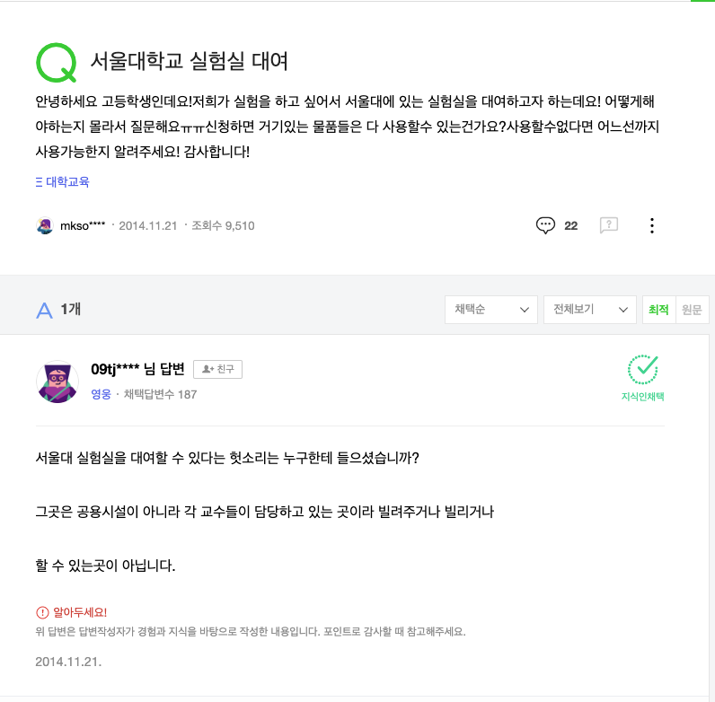 다만 나경원 원내대표의 아들의 실험실 대여에 대해선 논란이 많은데 우선 나경원 원내대표의 아들이 사용한 실험기기와 지도교수여부.. 그리고 같이 참여한 대학생 혹은 대학원생과 조교의 여부를 따져 봐야 하겠지만 상식선에선 일반인들은 대여가 어렵지 않을까 생각합니다. 해당 학교의 학생이나 대학원생도 아닌 일반 고교생이 대여를 한 것이니 아무래도 아는 사람이 없다면 불가능하지 않을까 싶습니다.