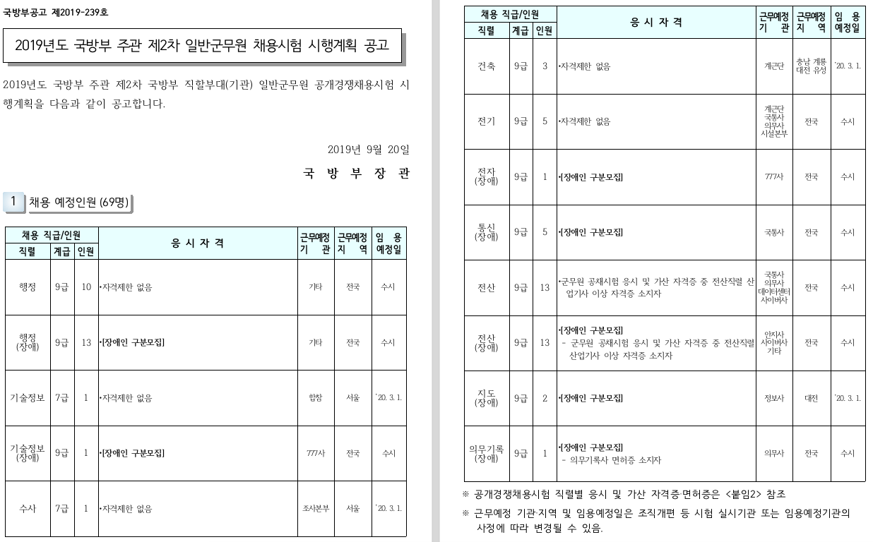 국방부와 육·해·공군본부가 군무원을 공개경쟁채용 방식으로 모집한다 합니다..