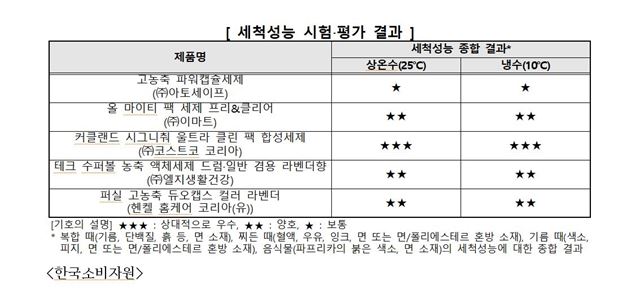 5개 제품 중 개당 159원 제품이 세탁성능 ‘우수’... 안정성ㆍ친환경성 등은 모두 ‘적합’