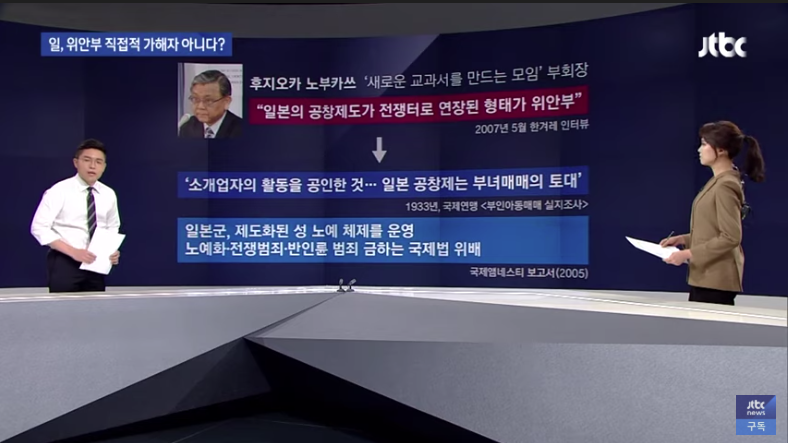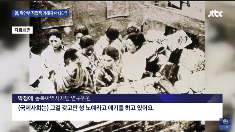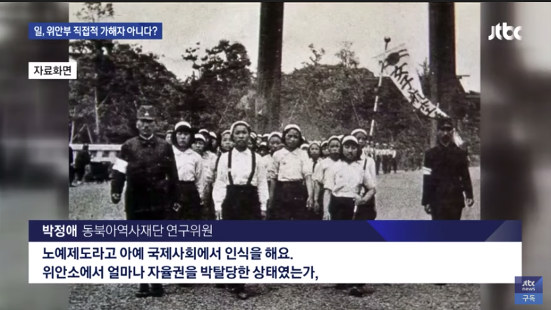 또 불법인지를 따지는 것은, 모집 과정만 볼 것이 아니라, 일본이 합법으로 내세우는 공창제도 자체가 인권유린이라는 걸 따져야 합니다. 이미 1933년 당시에도 국제사회가 일본 공창제도가 노예제라고 지적했습니다. 결국 여성들이 자신의 뜻과 무관하게 인권 유린 상황에 노출된 자체가 문제의 핵심입니다. 전문가 이야기 들어보시죠.