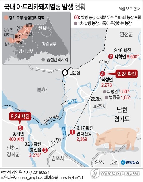 | 경기 파주서 아프리카돼지열병 또 확진..4번째 발병(종합) (0) | 2019.09.24 |