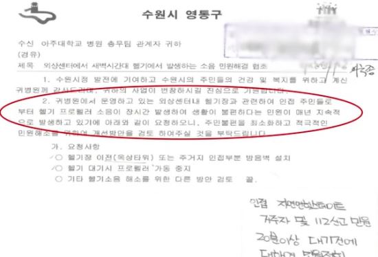 수원에 있는 아주대병원 바깥의 모습인데요.