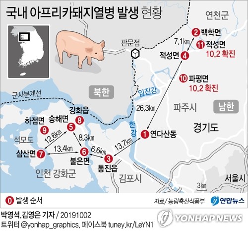 (세종·서울=연합뉴스) 박성진 이신영 이태수 정빛나 기자 = 아프리카돼지열병(ASF)이 국내 처음 발생한 경기도 파주시에서 2일 확진 사례가 2건 잇달아 나왔다.