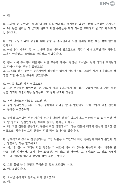 제목은 [조국 장관 자산관리인 “정경심, 코링크·WFM 먼저 언급…친척이 운용한다 했다”]로 정경심 자산관리자와의 인터뷰 내용이라 되어 있지만 KBS와 김경록씨와의 인터뷰 내용은 코링크에 관련된 내용만 있을 뿐..하드디스크내용이나 영어교육 자문료등에 대한 내용은 일체 없는 걸 알 수 있습니다.