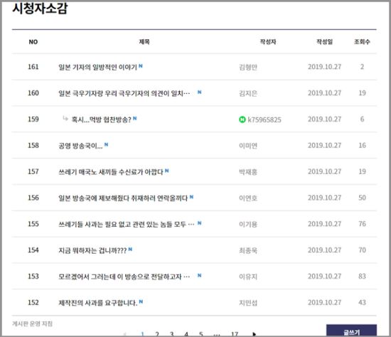 실명으로 운영되는 게시판에는 방송 이후 27일 오전 11시까지 120여 건의 비판글이 이어졌다. 최종욱씨는 “일본에서는 매일 말도 안 되는 혐한 방송이 쏟아지는데 방송 정말 이따위로 하시렵니까”라면서 “남의 소중한 수신료를 가지고 일본에 가서 이런 수준 낮은 방송이나 찍고 싶었나요?”라고 지적했다.