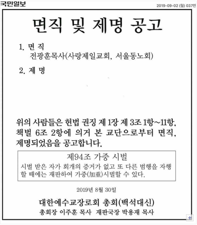 아 그리고.. 전광훈... 이젠 목사 아닙니다. 제명되었거든요..