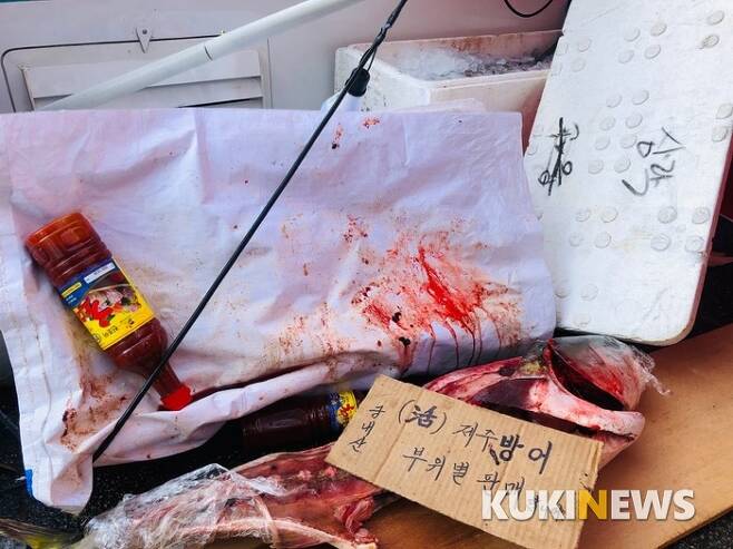 현장은 이미 쑥대밭으로 변해 있었다. 상인에 따르면 구청에서 고용한 용역들이 이날 새벽 6시경 천막과 장사물품들을 망가뜨렸다. 알루미늄 천막은 다리가 부러졌고 판매대도 아무데나 널브러져 있었다. 횟감용 방어 한 마리가 피범벅이 된 채 바닥에 나뒹굴고 있었다. 홍합 봉지는 옆구리가 터져 있었다.