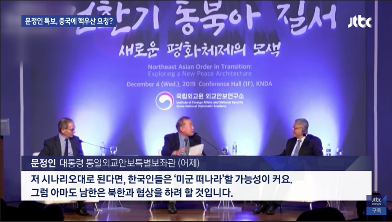 관련뉴스 : “한국에 중국 핵우산?”…문정인 발언 논란(채널A)