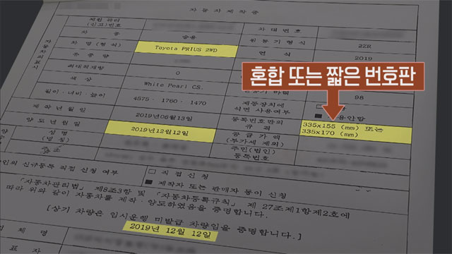 실제로 취재 당일, 구청에 제출된 일본차 제작증을 살펴보면 '등록 번호판 규격'에 '짧은 번호판'이 기록돼 있습니다. 구청은 제작증에 기록된 번호판 규격에 따라 번호판을 발급할 뿐입니다.