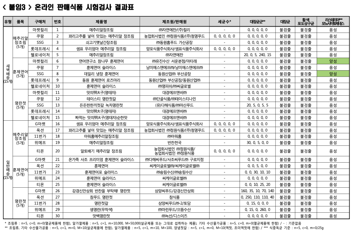 그외 다른 30여 제품도 검사했지만 훈재연어 2종 이외에는 검출되지 않았다 밝혔습니다.