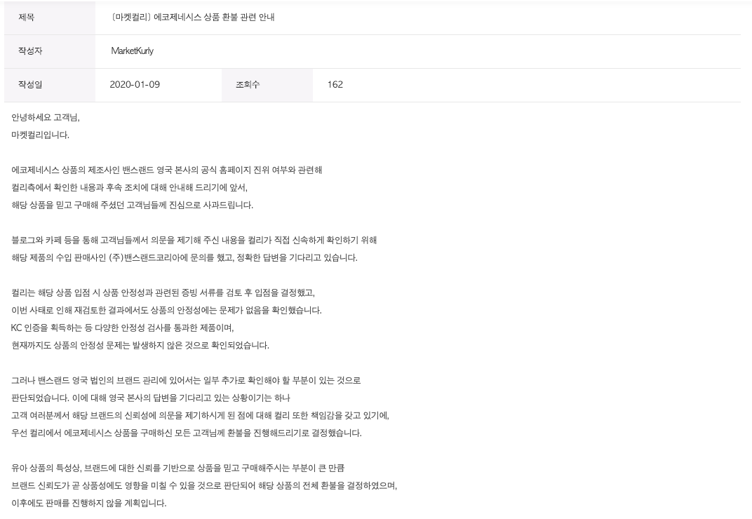 관련링크 : 마켓컬리(공지사항)