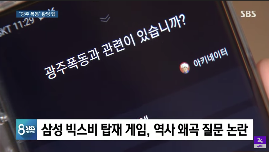 삼성 스마트폰에는 빅스비라고 하는 인공지능 대화 프로그램이 설치돼 있습니다. 거기에는 기본으로 내장된 게임이 있는데 그걸 하다 보면 왜곡된 역사 인식이 담긴 표현도 나옵니다.