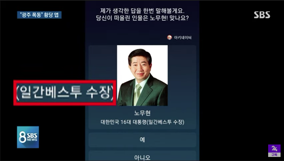 이런 아키네이터에서 5.18 광주민주화운동과 고 노무현 전 대통령에 대한 비하 질문이 나와 논란입니다..