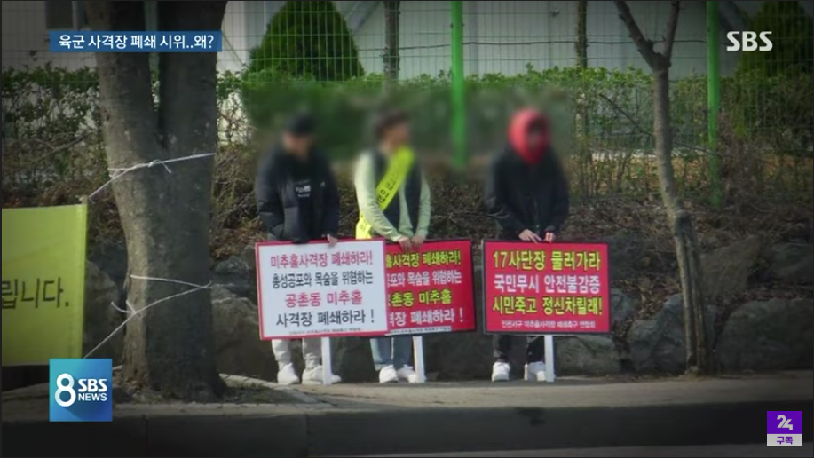 서진건설... 군사시설 보호구역 주변 땅을 사들인 뒤 사격장을 몰아내자 시위에 나섰군요..