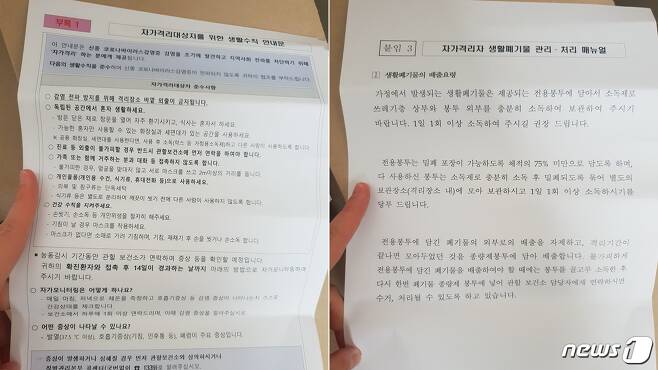 또 "격리 기간 중에 폐기물을 배출하면 방호복을 입은 처리업체 직원이 집을 찾을 수 있으니, 건강하게 격리가 해제된 이후 일반쓰레기 봉투에 폐기물을 버리는 게 낫지 않겠느냐"고 조언해줬다. 주변 이웃들의 시선이나 불안감을 고려한 친절한 설명이었다.