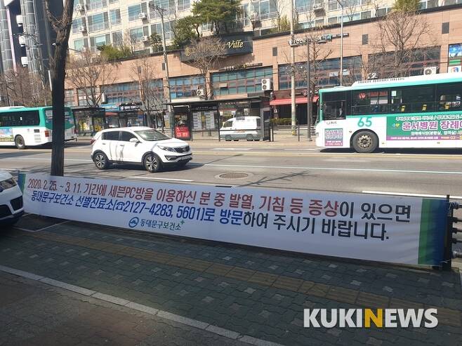 구청은 80여명의 연락처 확보에 주력하고 있다. PC방 인근 대로에는 “PC방 이용객 중 발열, 기침 등의 증상이 있으면 보건소에 방문해달라”는 현수막이 붙었다. 경찰의 협조를 통해 CCTV 등을 추적, 이용객 파악에 나섰다. 게임회사 등에도 정보를 지속 요청하고 있는 상태다.