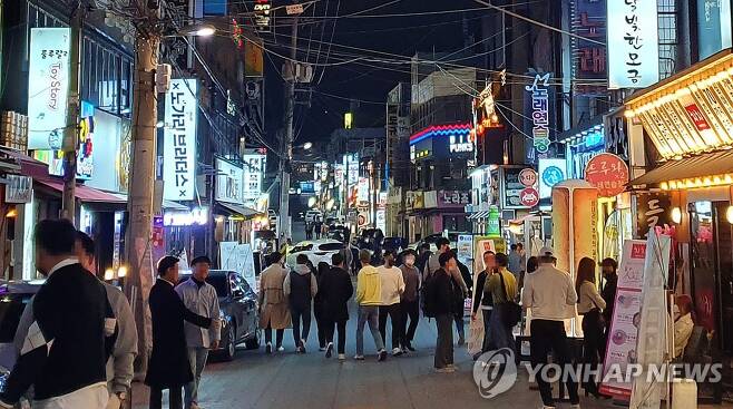 일대에서 식당을 운영하는 백모(62)씨는 "확진자가 줄어서 그런지 경계심이 좀 느슨해진 것 같다"며 "지난 주말부터 젊은 사람들이 거리에 늘었다"고 말했다.