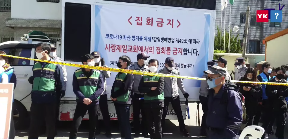 어떤 교회는 종교행사중 신도간 거리두기를 하지 않아 결국 집회 금지 처분을 받았습니다..